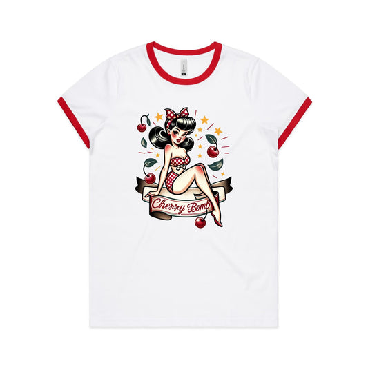 Cherry Bomb Pinup - AS Colour Women's Ringer Tee - 2 Colourways @BVCM