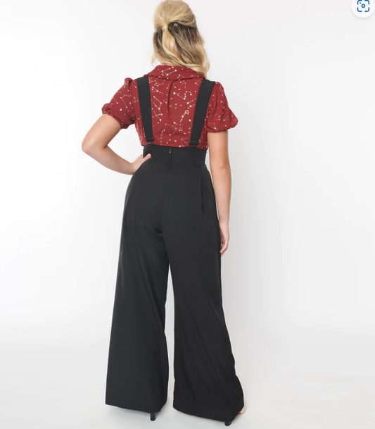 Unique-Vintage Black Wide Leg Rochelle Suspender Pants - Only XSmall, Medium & 2XLarge Left @BVCM