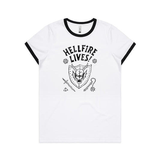 Hellfire Lives - Womens Ringer Tee - 2 Colours - Online Ordering Only